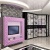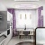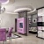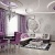 Акценты в этом модернистском интерьере расставляет оттенок – нежно фиолетовый, и в сочетании с белым глянцем задает тон, но не доминирует. Каждая зона выполнена отдельно, но при этом остается четкое ощущение единого пространства. Удалось этого добиться благодаря оформлению потолка, мебели, выполненной под заказ, аксессуарам. Просторная гостиная зонирована декоративной перегородкой, на которой расположился плазменный телевизор: с одной стороны удобная видеозона с мягким диваном, с другой – гостиная с круглым столом, который выделает черная столешница. Низкий столик у углового дивана в зоне гостиной привлекает внимание своей формой и необычностью, а натуральный ковер придает уголку для отдыха уют. Кухня наиболее динамичная, не перегружена деталями. Главная «изюминка» кухни – белые глянцевые поверхности, которые украшают плавные черные линии рисунка. Подобный рисунок и технику можно встретить и в других помещениях квартиры – в гостиной, на фасадах шкафа. Мягкое изголовье кровати в спальне прекрасно сочетается с отделкой стены, на текстильных обоях которой подчеркнут золотой рисунок. В спальне также нет ничего лишнего, она максимально функиональна, как и кухня. Главным ее украшением является сама мебель, выполненная по индивидуальному заказу, светильники на прикроватных тумбочках и две динамичные декоративные вставки над изголовьем кровати. Чил-аут зона гостиной привлекает внимание нестандартной графичной отделкой стены позади дивана и зеркалом в очень динамичной круглой раме.