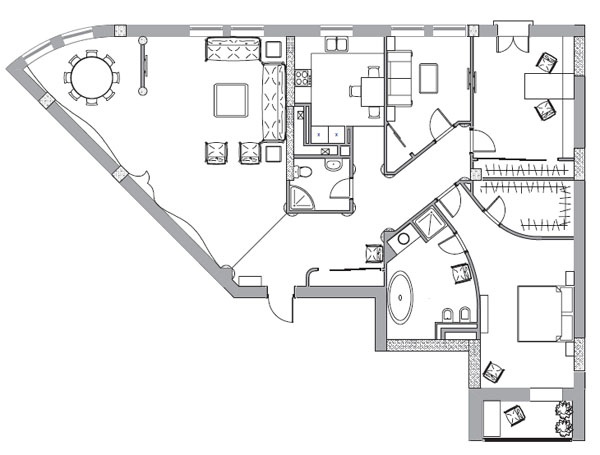 Классический кухонный треугольник – холодильник-плита-мойка, где мойка – вершина треугольника, а центр вершины – смеситель.