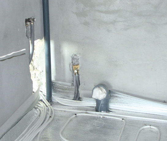 Пол.  При устройстве чернового пола проконтролируйте при   помощи уровня,  чтобы он был ровным. Иначе возникнут сложности при   укладке финишного  напольного покрытия.