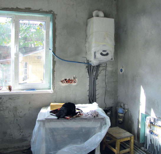 Поскольку  дом расположен в городской черте, он был подключен к   централизованной  системе водо-, электро- и газоснабжения. Для отопления в   доме  установлен газовый котел. В прихожей и санузлах — водяной теплый   пол.