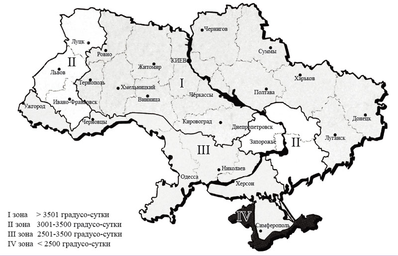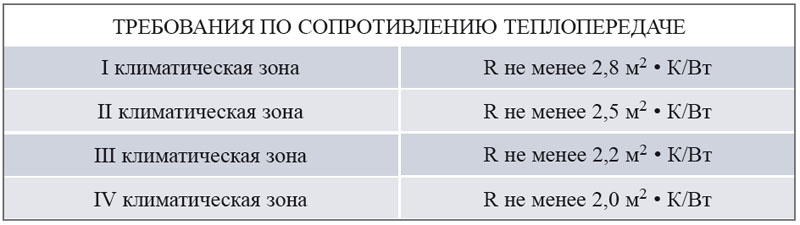 Наиболее часто теплоэффективность оценивается показателем «сопротивление теплопередаче» (R). Нормативные значения R, которые определяются в зависимости от географического месторасположения дома, приведены в нормативном документе ДБН В.2.6–31: 2006 «Теплова ізоляція будівель». Для этого вся территория Украины разделена на 4 температурные зоны. В I зоне, самой северной и самой большой, значение R должно быть не менее 2,8 м2 • К/Вт, в II зоне значение R — не менее 2,5 м2 • К/Вт, в III зоне — не менее 2,2 м2 • К/Вт, в IV зоне — не менее 2,0 м2 • К/Вт.