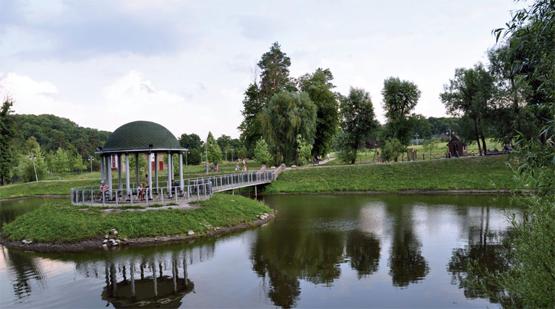 Этот огромный, красивый и благоустроенный ландшафтный парк создан совсем недавно, в 2010 году. До этого здесь был лес, в котором располагались самые разнообразные учреждения: Свято-Пантелеймоновский монастырь, элитная клиника «Феофания», институт теоретической физики.