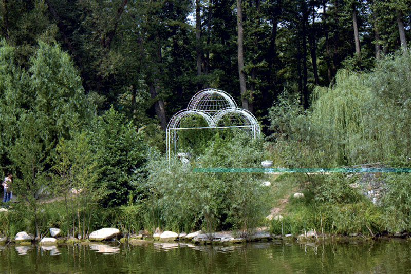 Визитной карточкой Феофании является альтанка с зеленой крышей, возвышающаяся на специальной насыпи в центре озера. Пожалуй, это самое популярное место для проведения фото- и видеосъемок романтических историй молодоженов. Пройти к альтанке можно по мостику. В темное время суток здесь загорается специальная подсветка, альтанку окутывает атмосфера таинственности и неповторимой романтики. Надо сказать, что парк тщательно охраняется, ведется видеонаблюдение. Ворота Феофании закрываются в 23 часа.