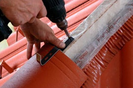 Используется - самоклеющаяся уплотнительная полоса. Защищает крышу от задувания снега, грязи и воды. Материал - полиуретановая пена.