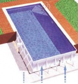 Защитный слой состоит из 55% алюминия, 43% цинка, а также 2% стали, используемой для связи всех материалов вместе. Эта технология используется в строительстве более 50 лет. Внутренняя отделка выполняется из устойчивой к морозам и УФ лучам ПВХ пленки. Время на полную инсталляцию бассейна 10-15 дней.